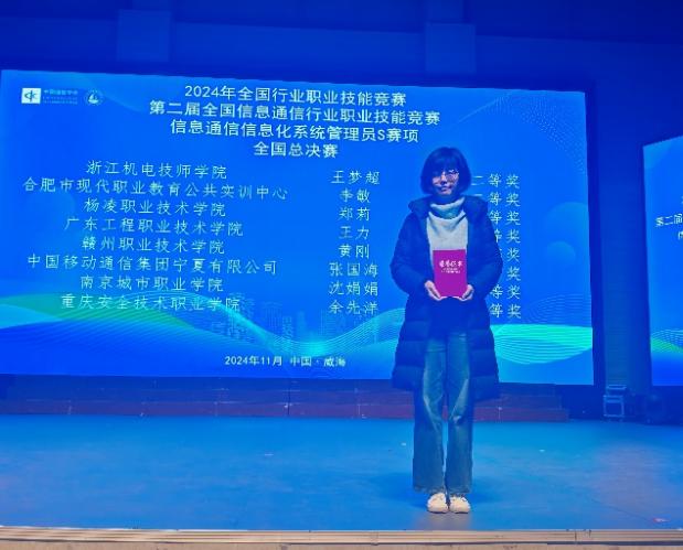 赛分为理论知识竞赛和实操竞赛两部分,赛项设计紧密贴合信息通信行业高速发展所带来的人才需求激增的趋势。经过两天激烈的角逐,智能工程学院计算机教研室教师沈娟娟凭借扎实的专业知识储备和丰富的实践经验,在职工组比赛中荣获二等奖。智能工程学院2023级计算机网络技术1班陈媛媛在赛场上以沉稳冷静的心态和精湛娴熟的技能应对各项挑战,在学生组比赛中荣获三等奖。